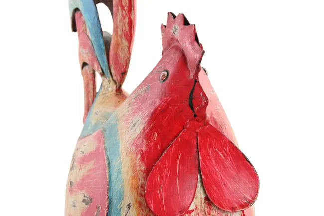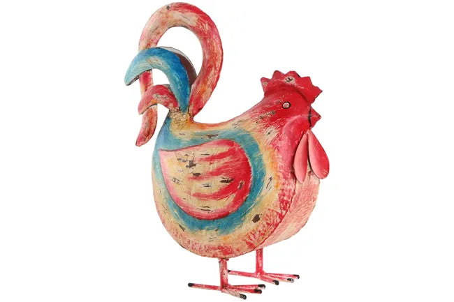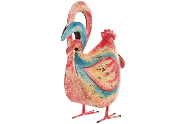 Figura metálica con forma de gallina en tonos rojizos. Ideal para darle un toque divertido a tu hogar.