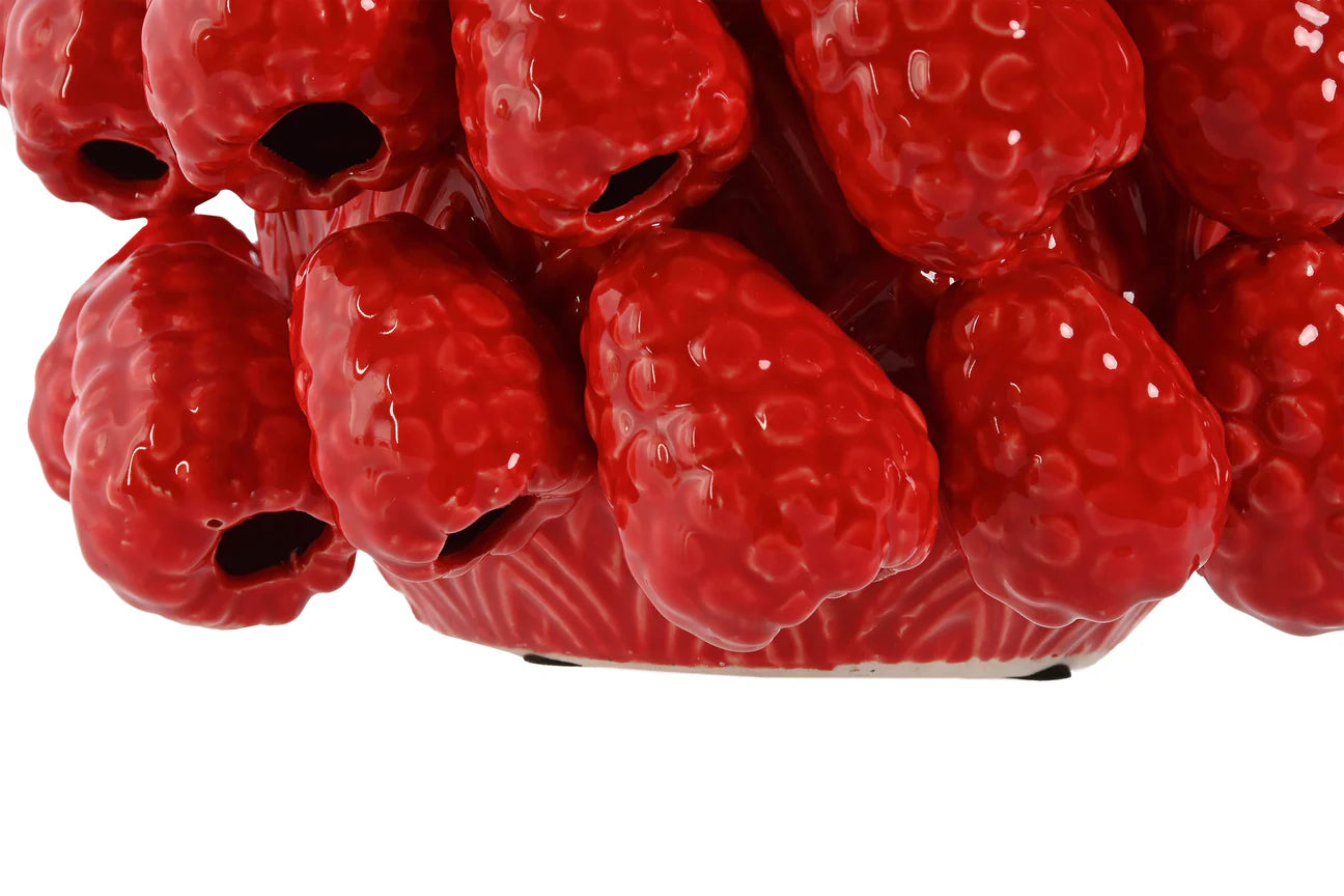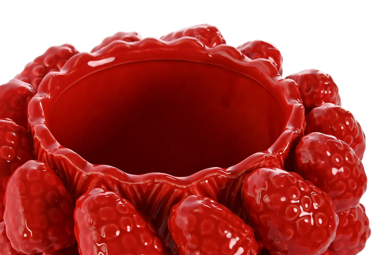 Transforma cualquier espacio en un rincón lleno de originalidad y color con este espectacular jarrón de cerámica en diseño de frambuesas. Su vibrante color rojo brillante y su textura detallada hacen de este jarrón una pieza única que combina arte y funcionalidad. Perfecto para usar como centro de mesa, macetero decorativo o para dar un toque fresco y atrevido a tu decoración.