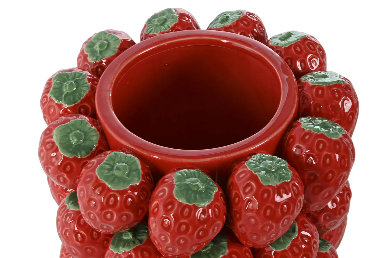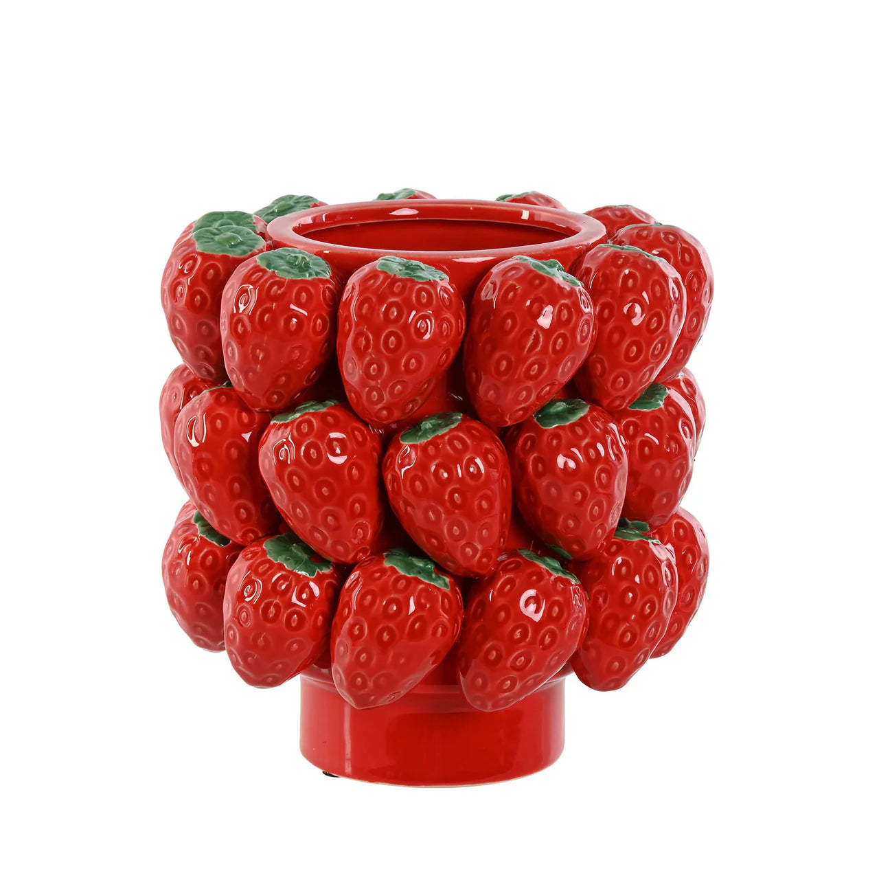 ¿Te imaginas un objeto decorativo que capte miradas, provoque sonrisas y despierte recuerdos dulces al instante? Este centro de mesa de cerámica con diseño cilíndrico y fresas en relieve es justo eso: una declaración de estilo atrevido, alegre y lleno de personalidad.