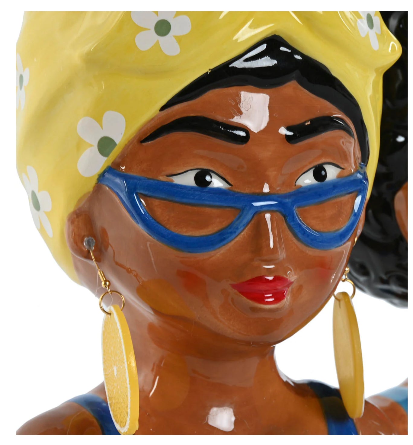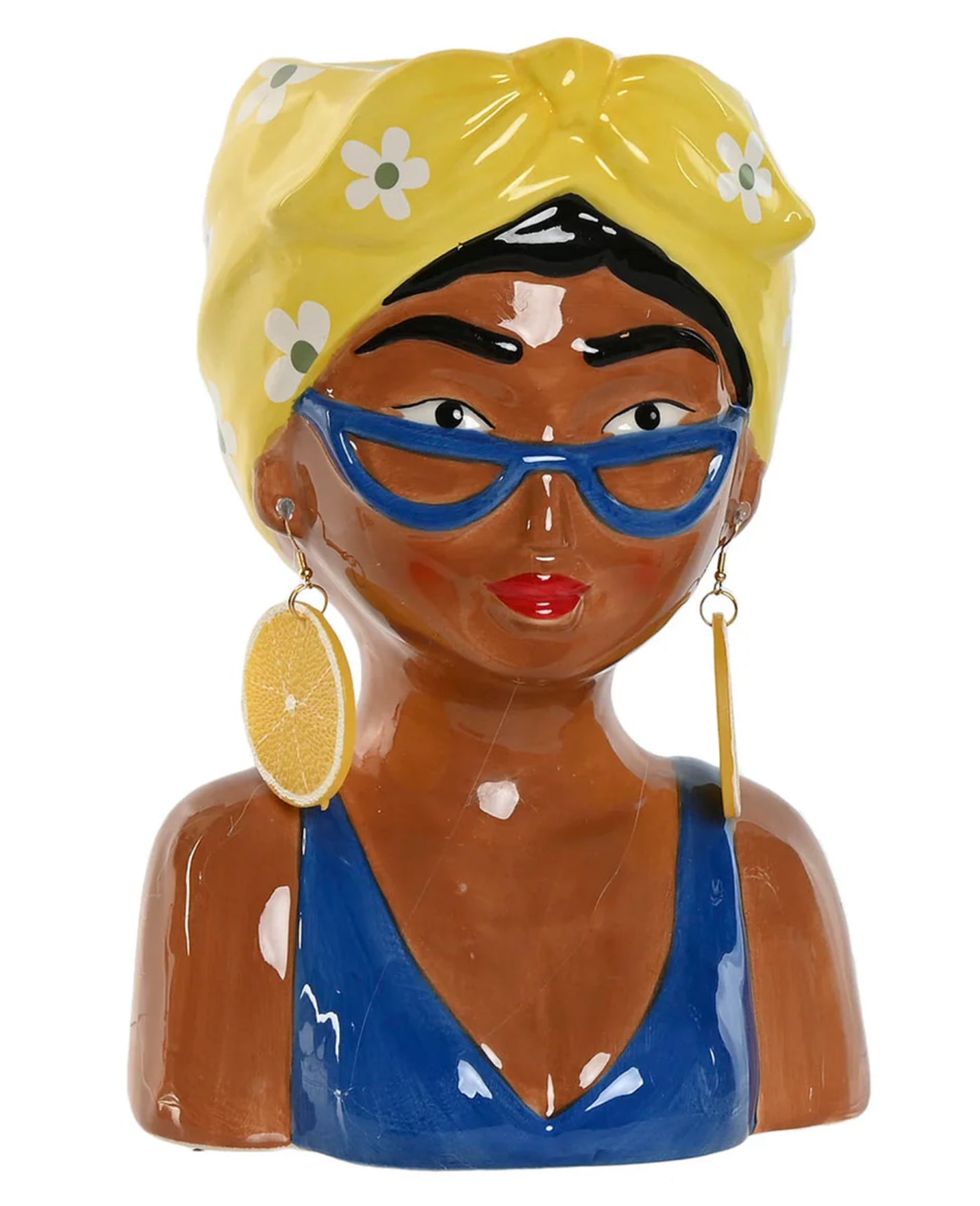 Jarrón de cerámica con diseño de busto de mujer con detalles de limones.
